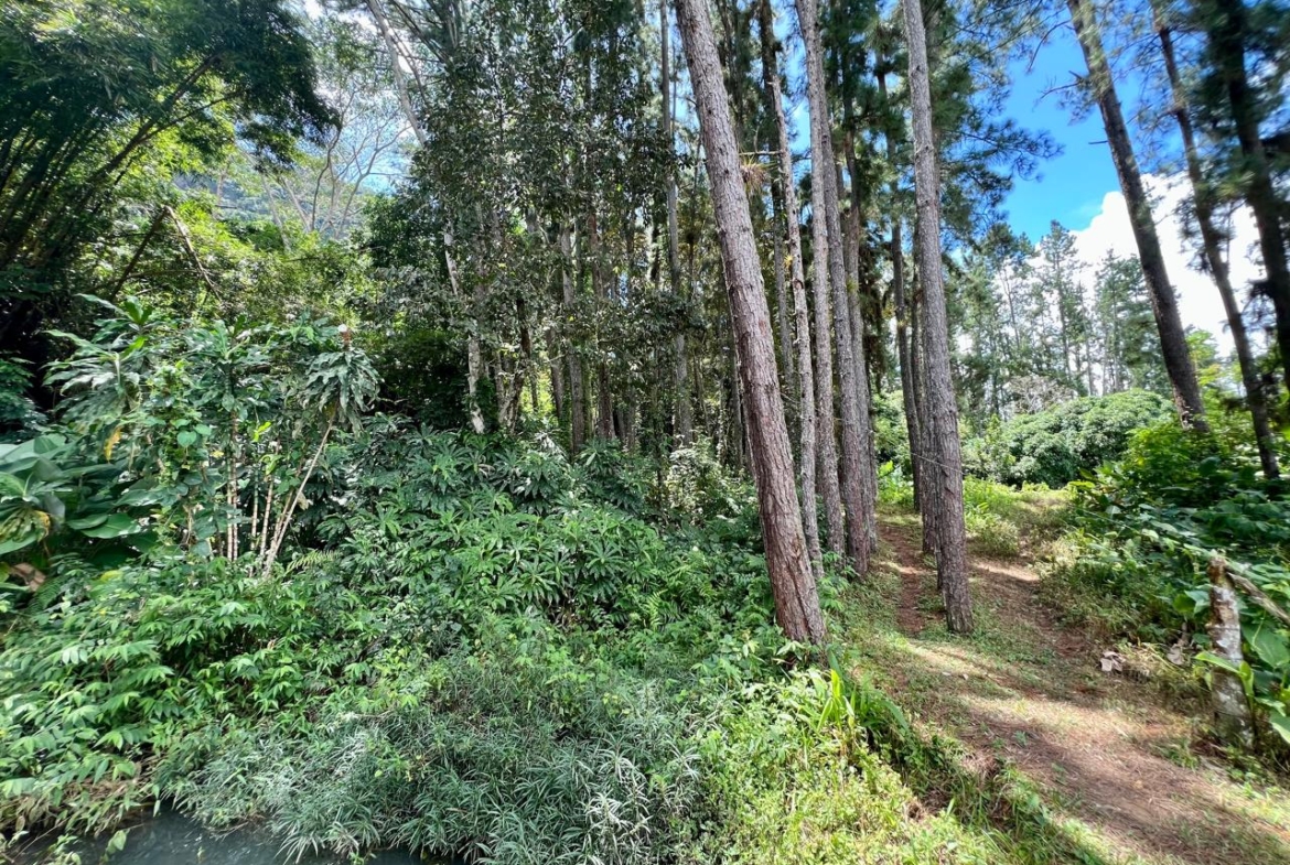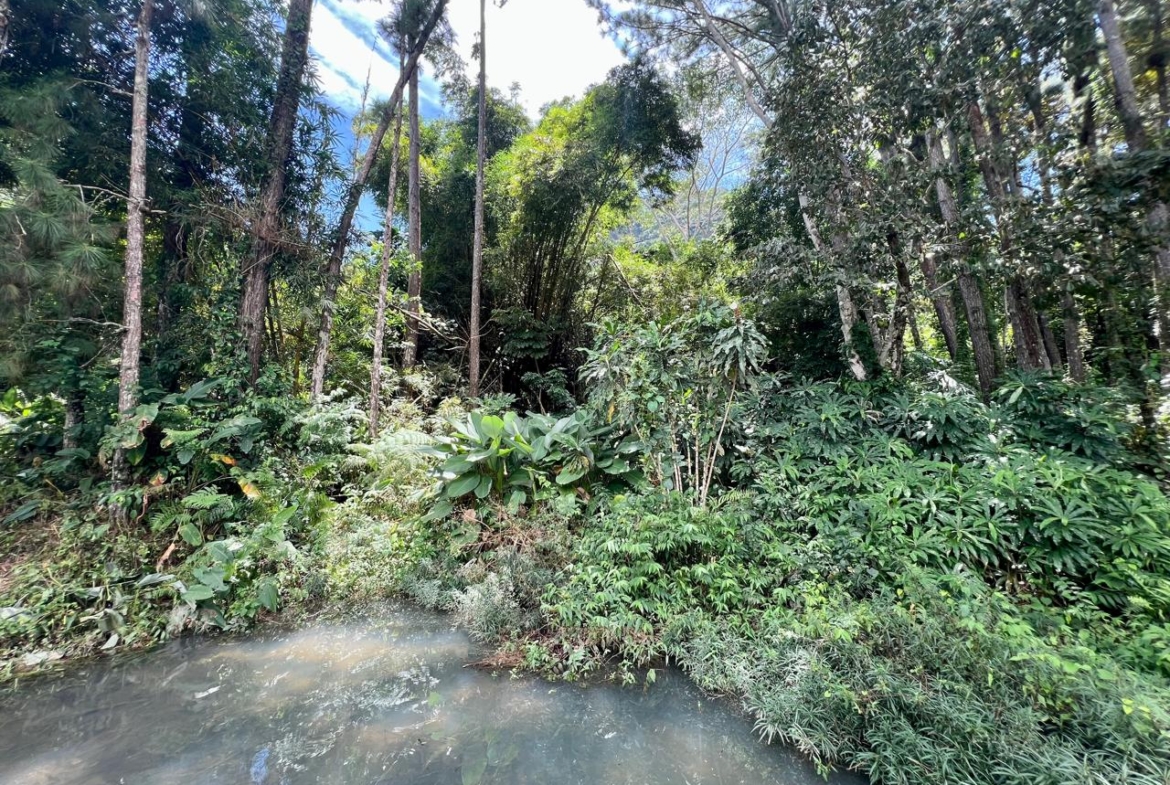 La finca cuenta con árboles maderables y abundante vegetación autóctona, ideal para conservar o aprovechar responsablemente.