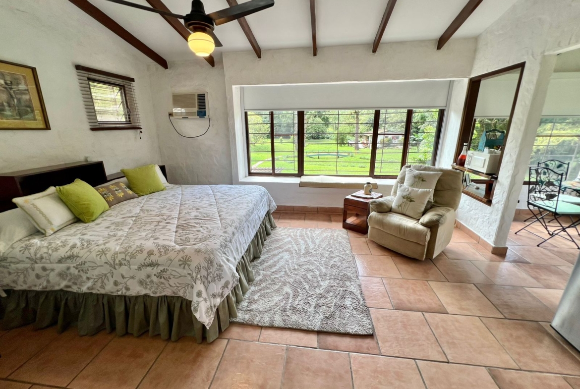 Con clima fresco, terreno de 2.5 hectáreas y un río que bordea la propiedad, disfrutará del verdor, las plantas, los árboles y la brisa mientras admira las impresionantes vistas a los cerros.