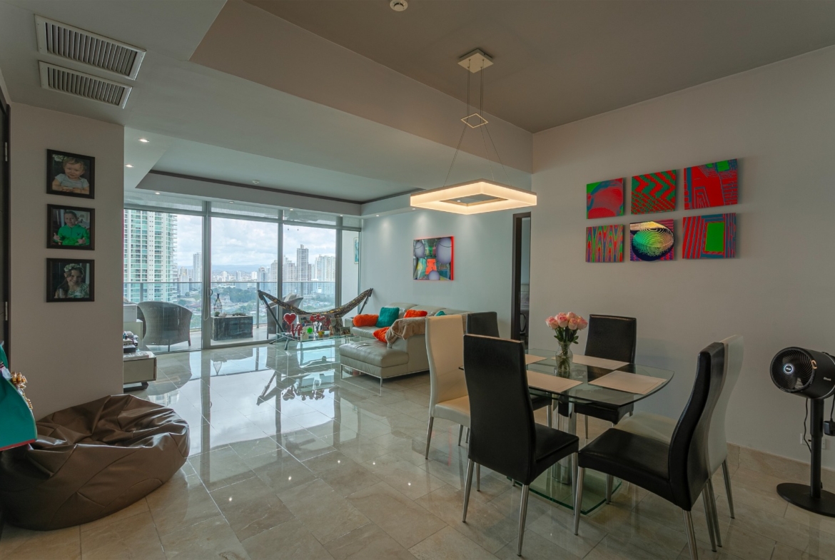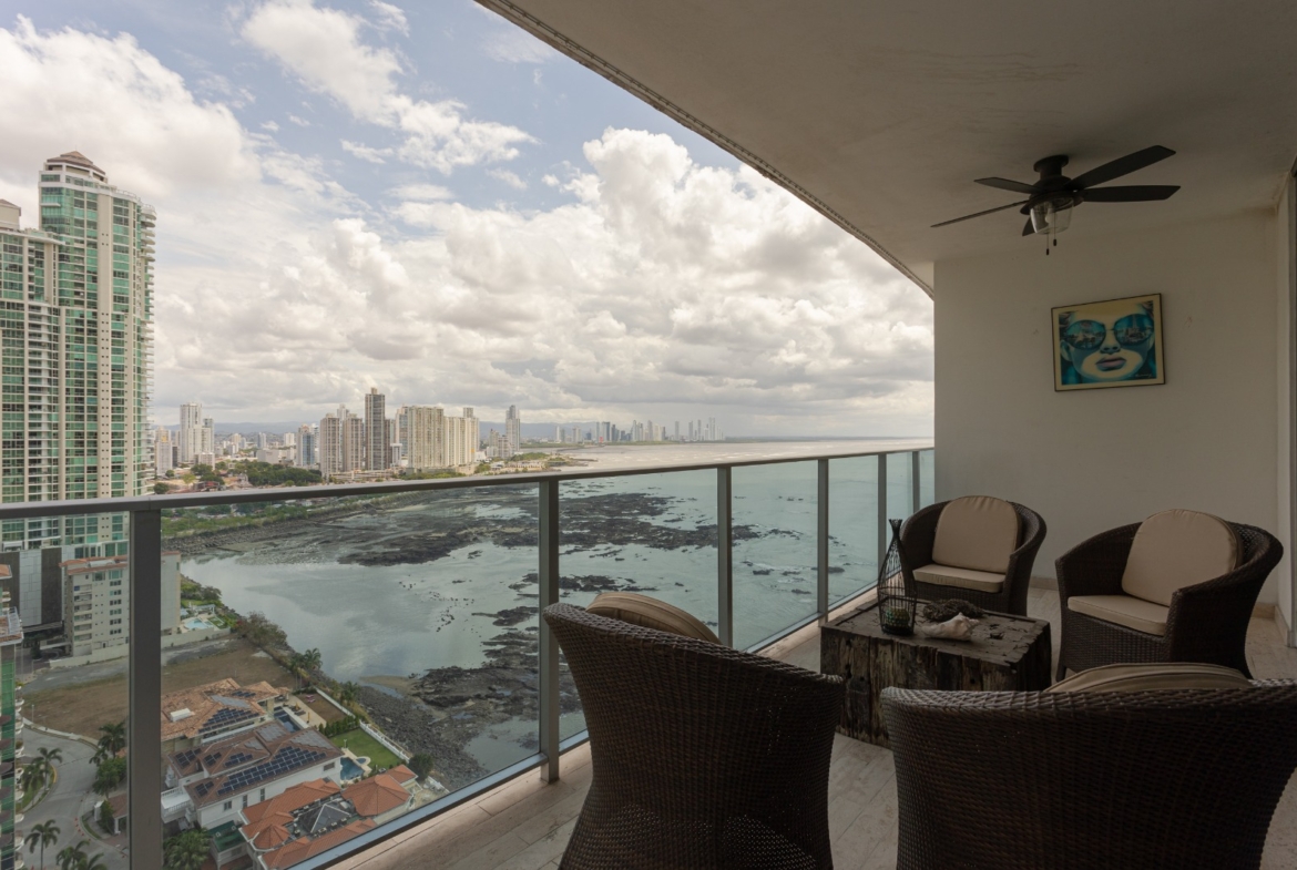Vive en uno de los rascacielos más exclusivos de Punta Pacífica con esta espectacular propiedad de 159m², completamente amoblada y con impresionantes vistas al mar.